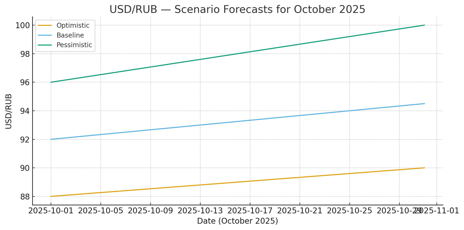 Учитывая перечисленные факторы, можно выделить несколько вероятных сценариев для курса USD/RUB в октябре: